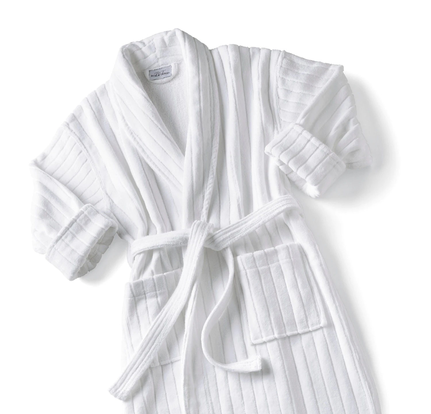 Your guests will love wearing this silky, sophisticated, 100% combed cotton velour robe. The perfect choice for morning or evening, it features a 1″ vertical stripe pattern and classic roll-up collar and cuffs. OSFM. 52″ L.