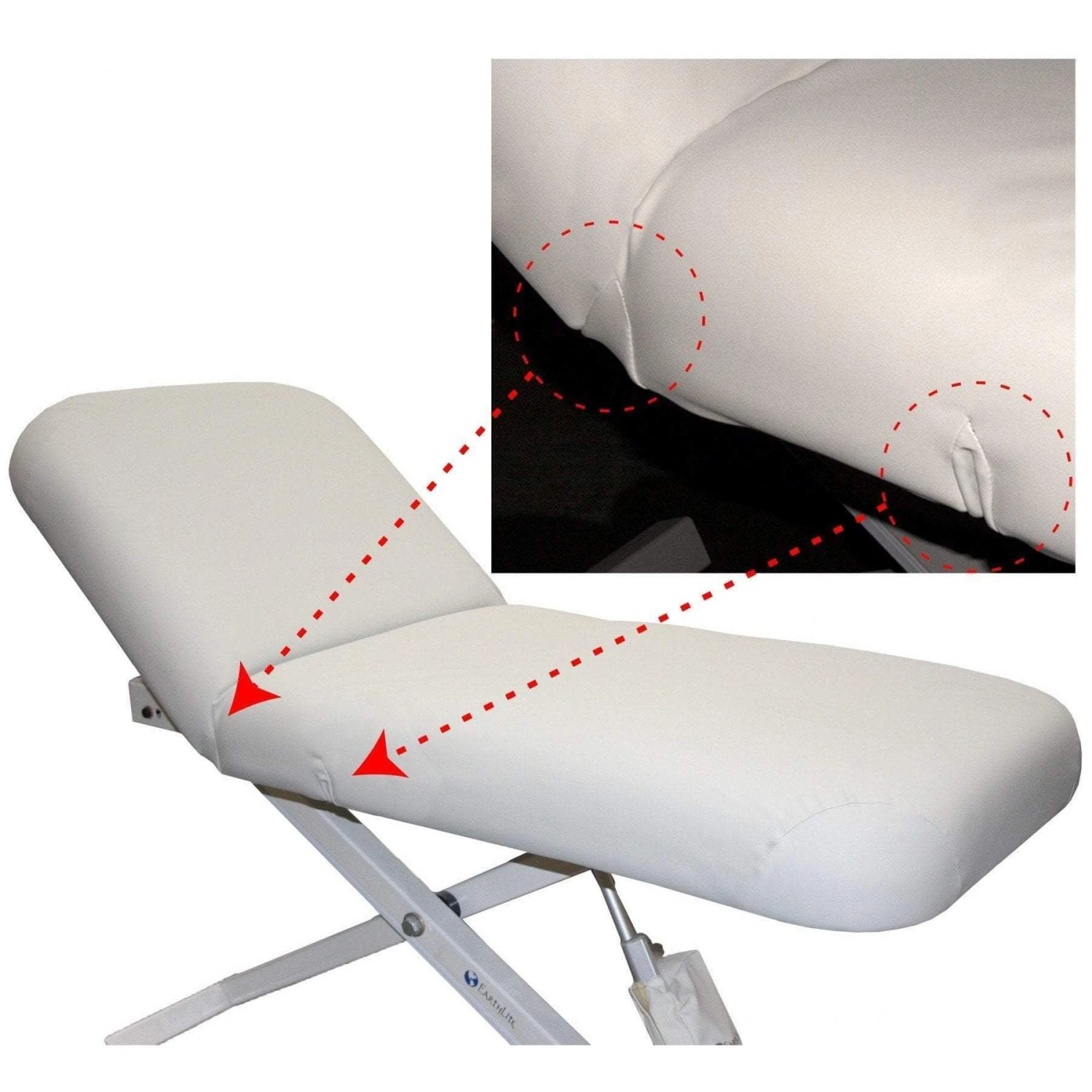 Patent Pending Flexa-Cover™: Tailored perfectly to fit your LEC Salon table. Patent pending gussets allow the cover to stretch with the articulating top. Deep pocketed for today’s generous cushioning systems.