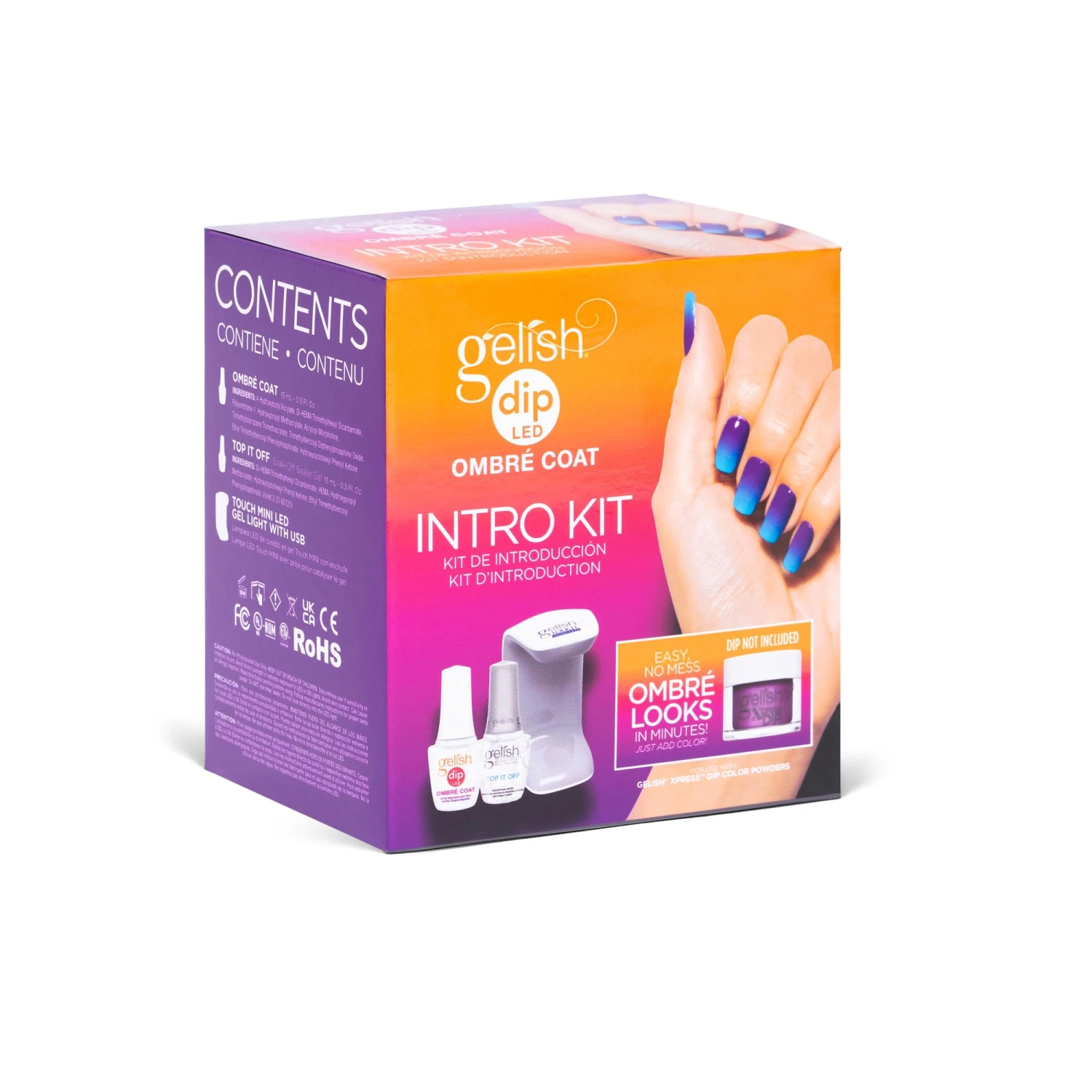 The Intro Kit includes Gelish Dip Ombré Coat (0.5 fl 0z) , Gelish Top It Off (0.5 fl 0z), and the Touch MINI LED Light. Just add dip!