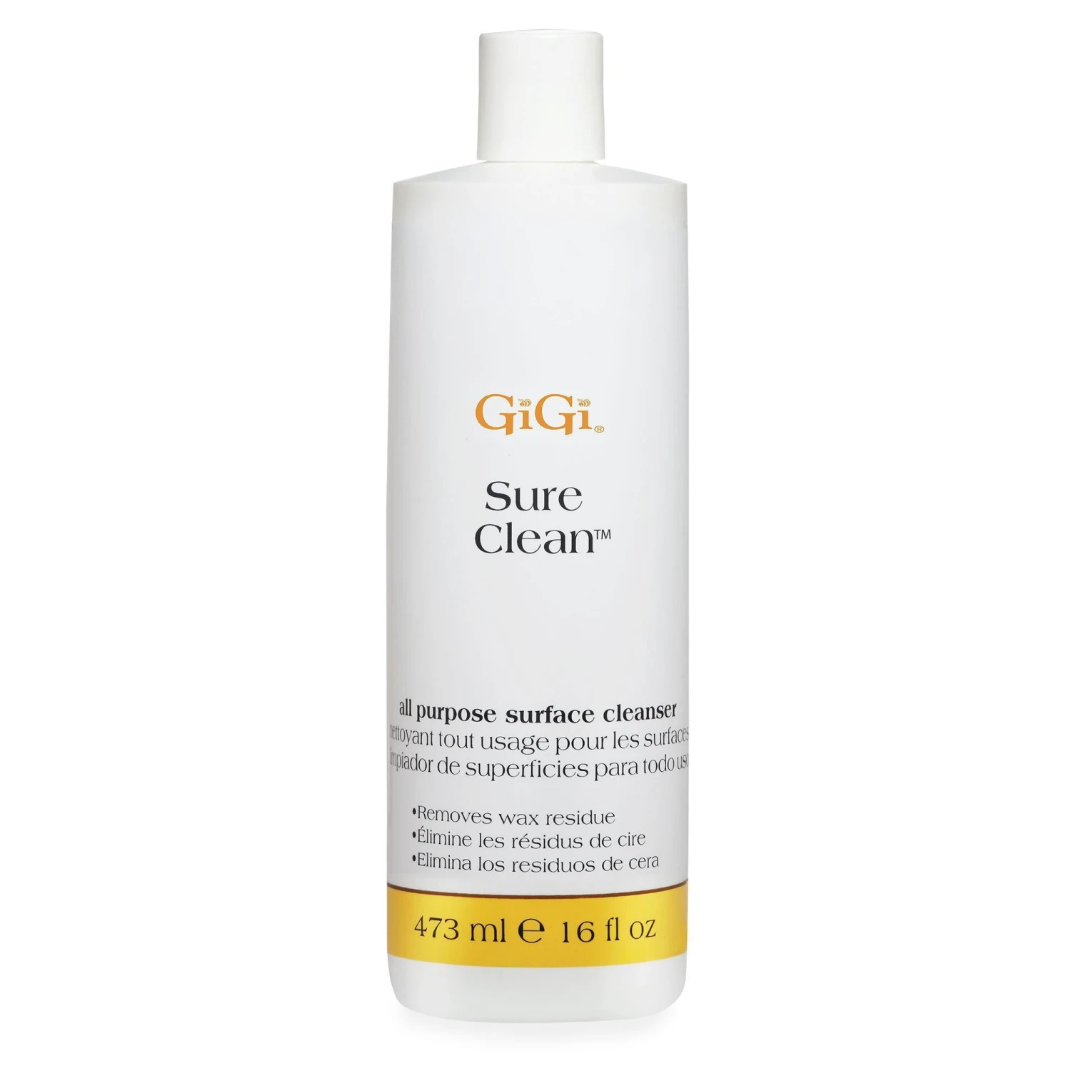 Remove wax from carpet, floors, upholstery, and clothing with Gigi Sure Clean. Fast and effective, this multipurpose surface cleaner cleans and maintains all Gigi Warmers, as well as most salon surfaces. This no-rinse formula is also effective on chewing gum, grease, crayons, lipstick, and more. 16 fl. oz.