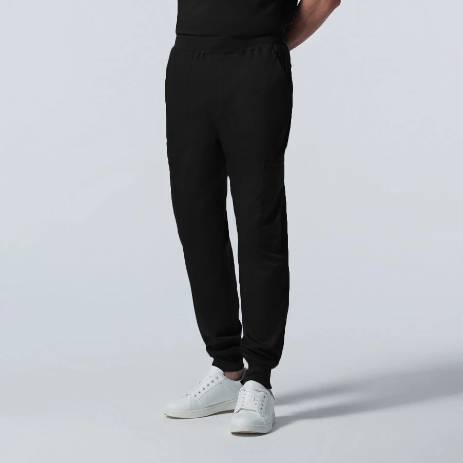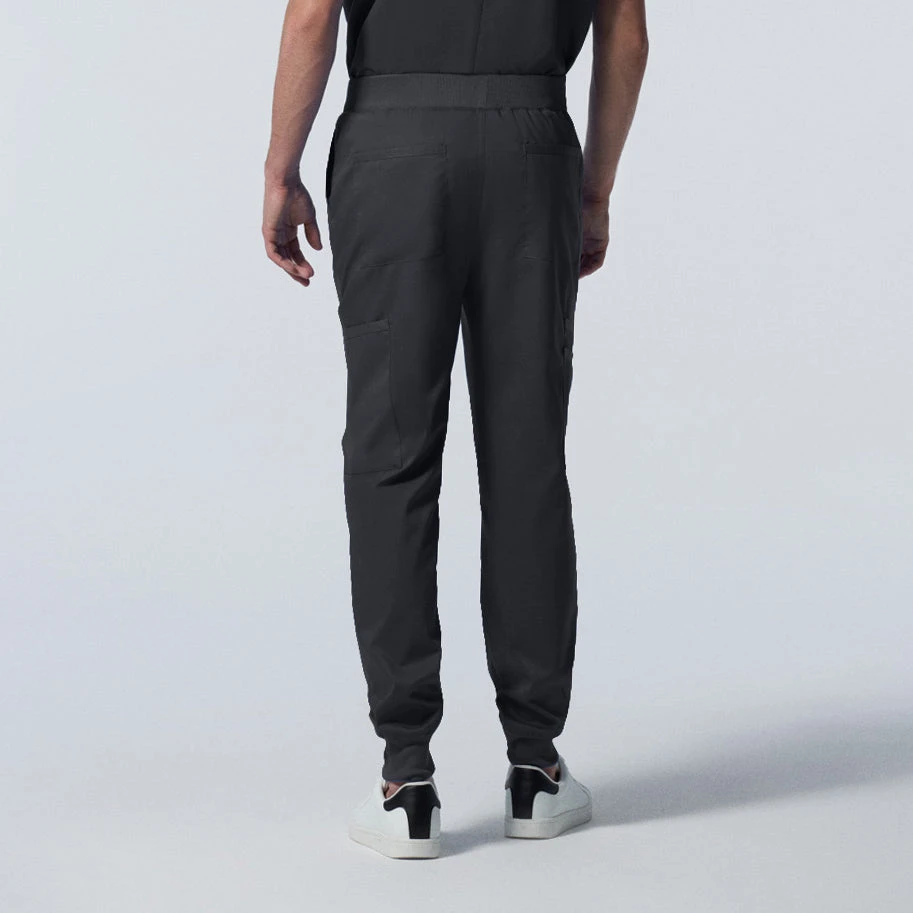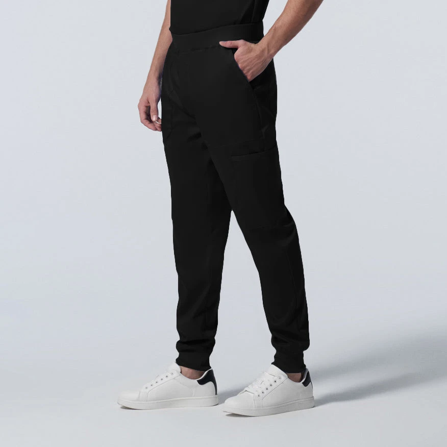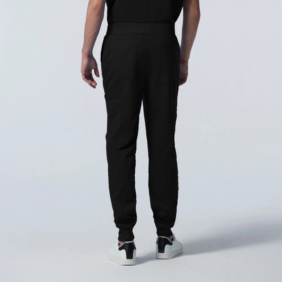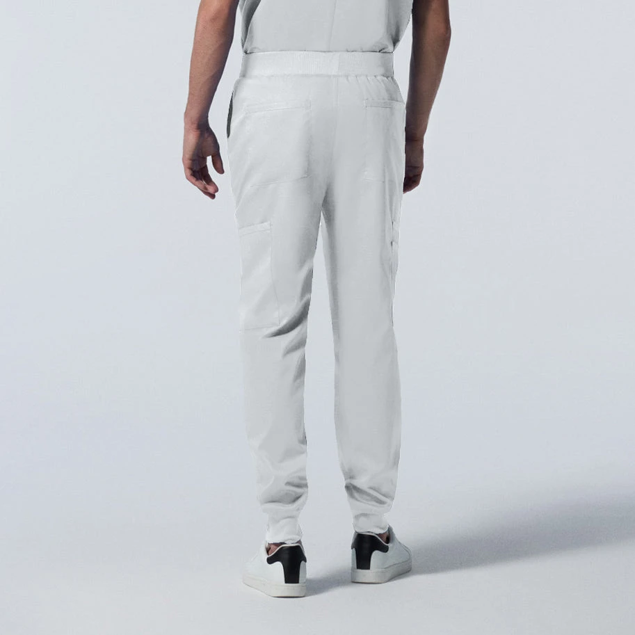 Men’s Fit, zip fly jogger has a stretchy rib knit waistband with an internal drawstring. Rib knit bottom cuffs, 3 cargo pockets, 2 back pockets and 2 front pockets with 1 bungee loop to put your ID badge giving an easy access to instruments and accessories.