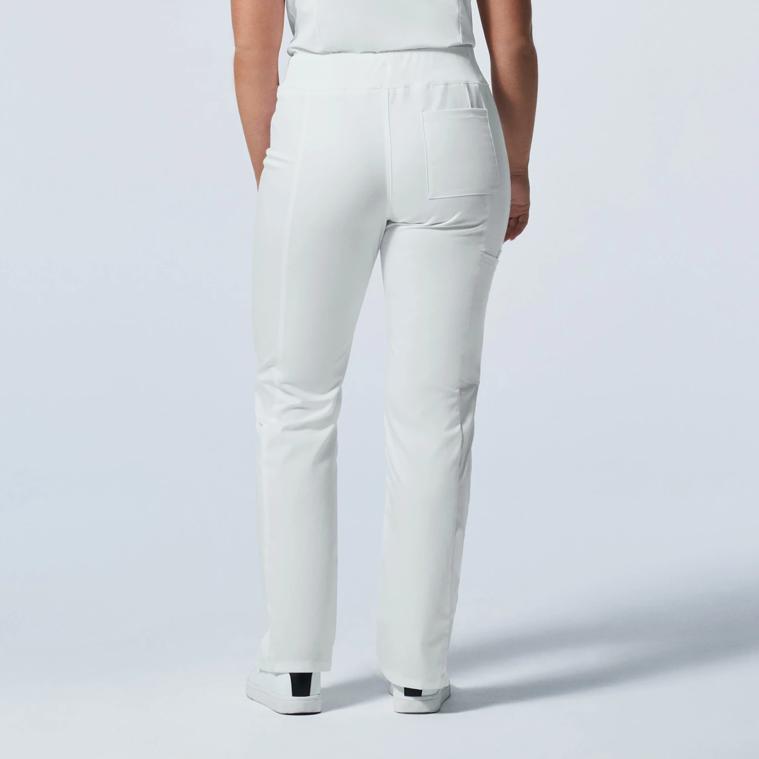 A Modern Fit , mid-rise, straight leg pant with a knit waistband and an internal drawstring provides comfort and functionality. With 2 Cargo pockets with a hidden elastic loop to keep accessories organized, 2 front pockets with one having and an additional 2 back pockets to keep all essential items close at hand.