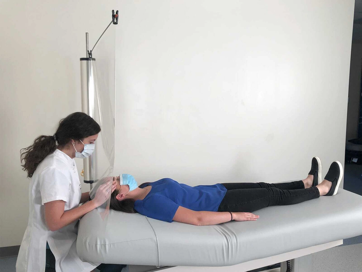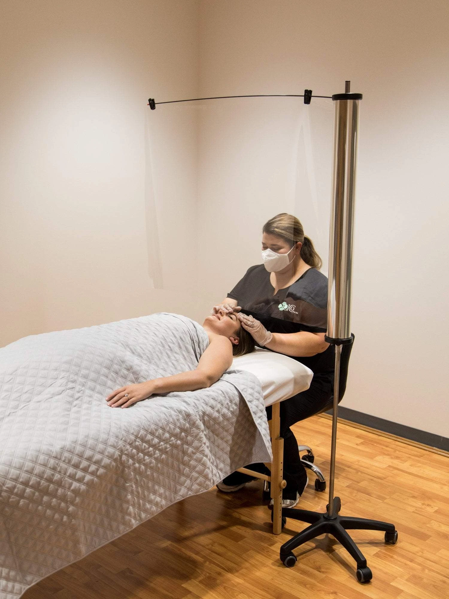 The Oakworks Shield allows appointments that require close proximity to be performed more safely. The clear film can be easily positioned to create a barrier between two people while not restricting access to the client. Service providers can get close enough to work while maintaining good ergonomics. Visibility through the shield is excellent, and it’s easy to reach under the shield or position body part outside of the shield. Portable, easy to move, and adjustable in height, the Oakworks Shield can be rolled into place when needed.