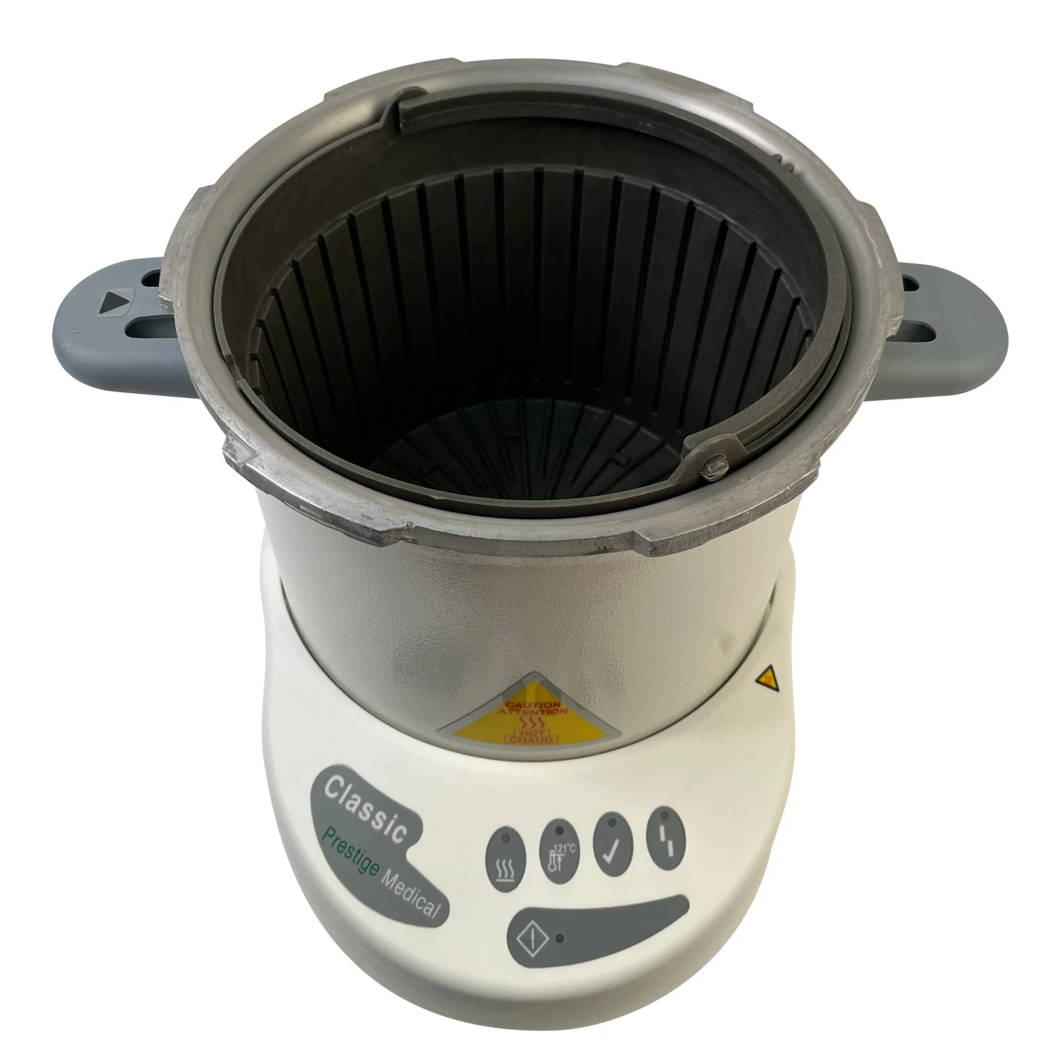 Steam sterilization or autoclaving is the preferred method for eliminating the risk of cross infection through contaminated instruments and the only one recommended throughout the world by healthcare professionals, including the World Health Organization. This autoclave is one of the largest selling and most cost effective automatic autoclaves available. Single, one-step operation. Fully automatic. Electronic detectors turn off power if there is insufficient water charge. Mechanical interlock system prevents lid from being removed while pressure remains in the chamber. Large capacity chamber – 8” in diameter and 9” deep. Weighs 9.9 pounds. The Medical Autoclave meets UL® 544 and CSA Class 8721 01 requirements. FDA 510K Premarket Approval # – K962903