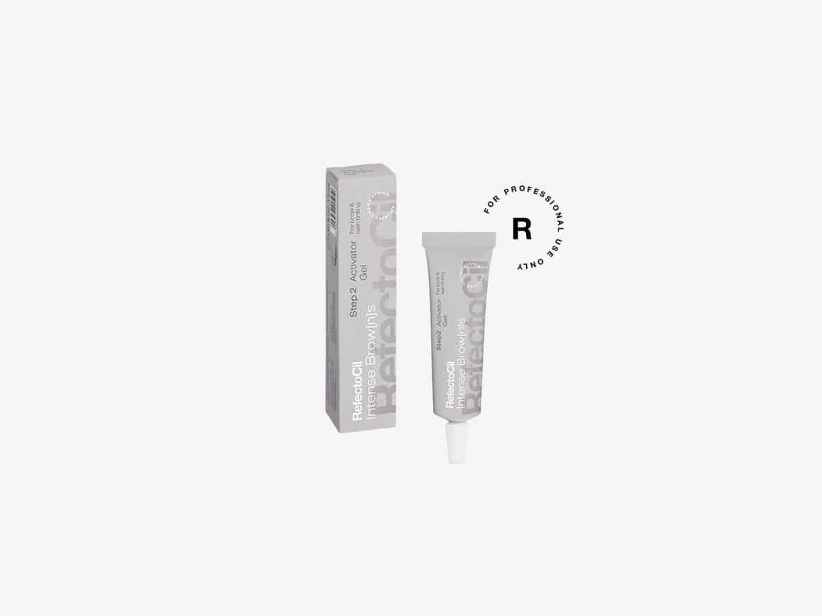The Activator Gel contains silver nitrate that tints brows and lashes from deep within. For brows and lashes, it’s the second step that lets the hair appear to be very dark, but this is not the final tinting result.
