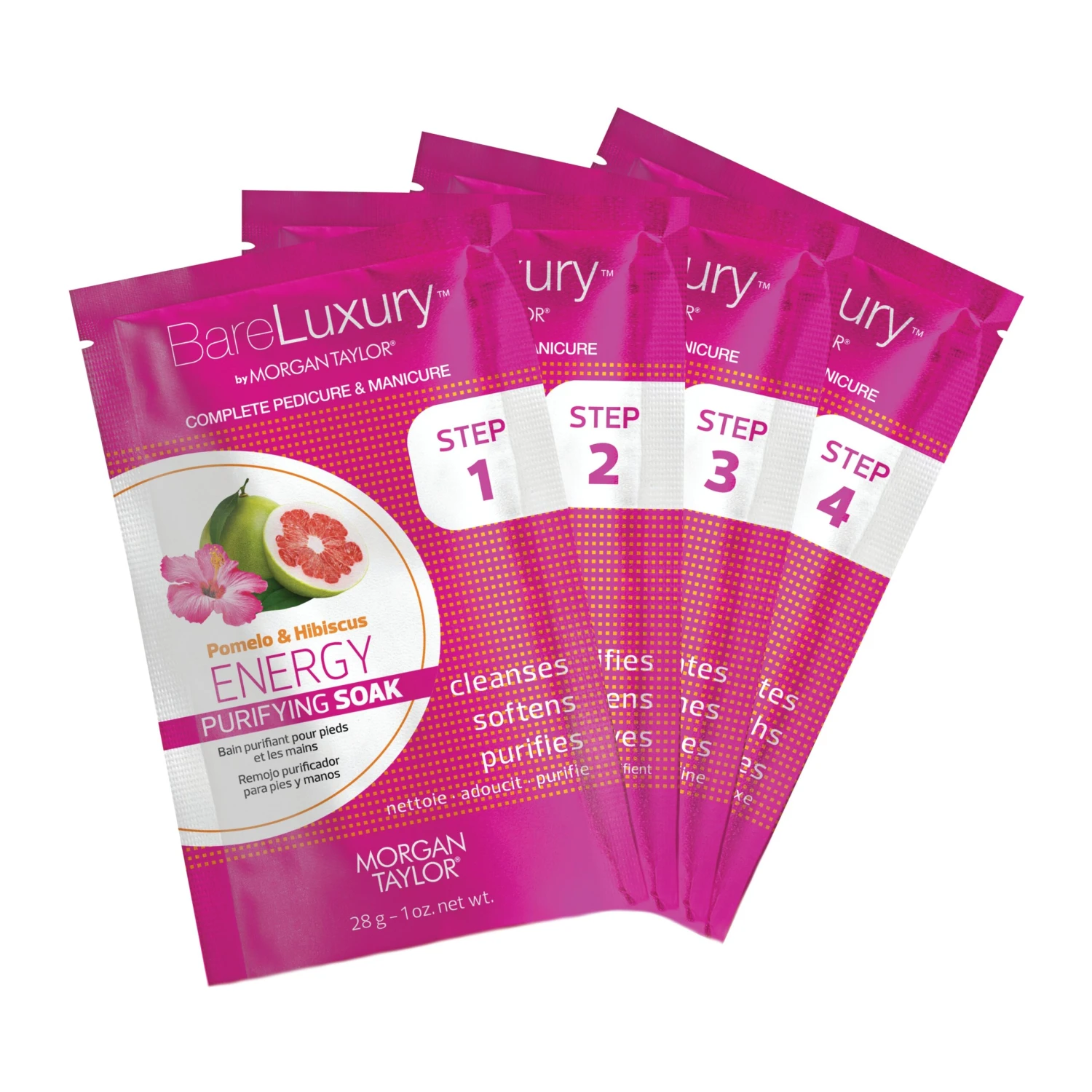 Encourage guests to care for hands and feet between nail services with BareLuxury™ Packs. These skin-softening mani-pedi kits offer a luxurious sensory experience and beautiful results. Pomelo & Hibiscus imparts a fruity floral aroma with a fresh squeeze of citrus.