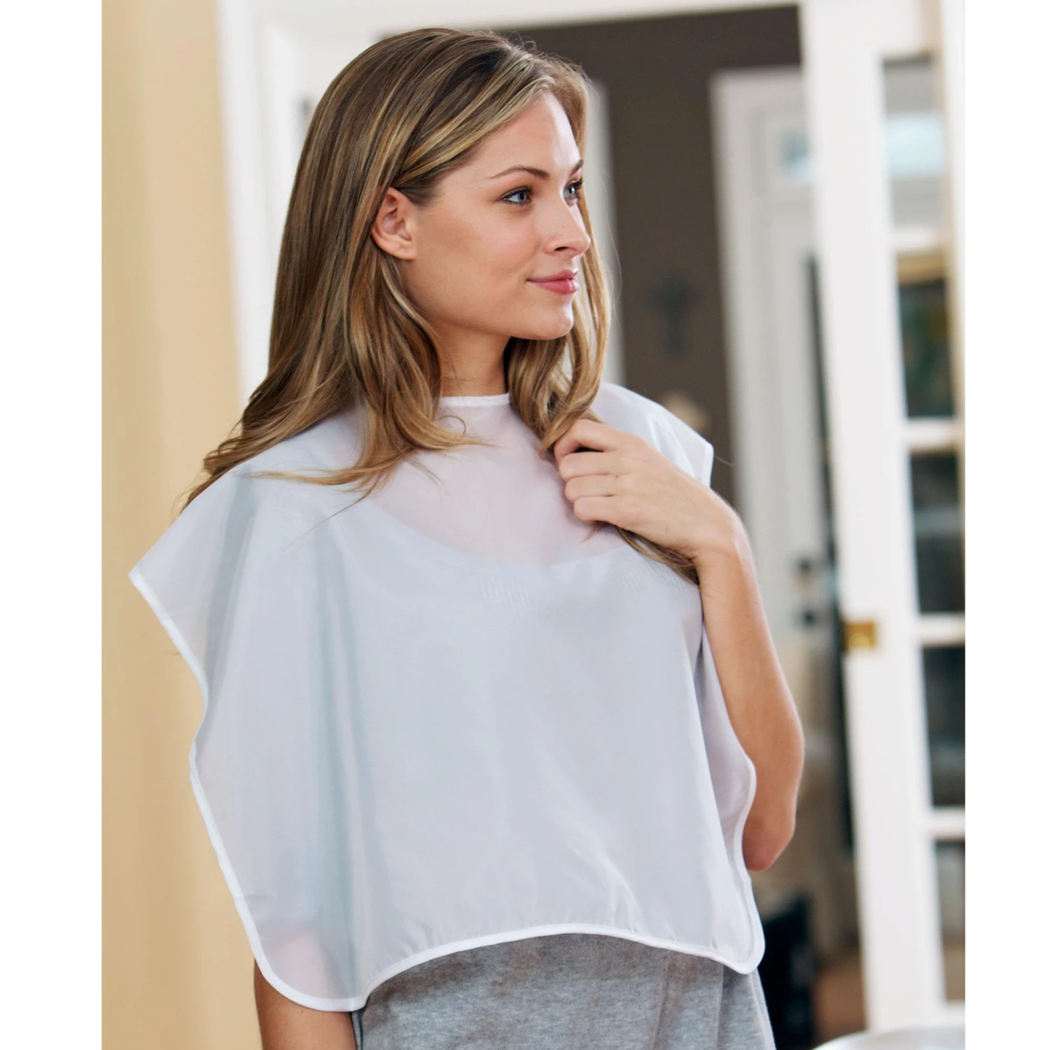 Cool and comfortable, this nylon cape will protect your client’s shirt from makeup and other products. Easy Velcro closure. 30” L x 23” W. White.
