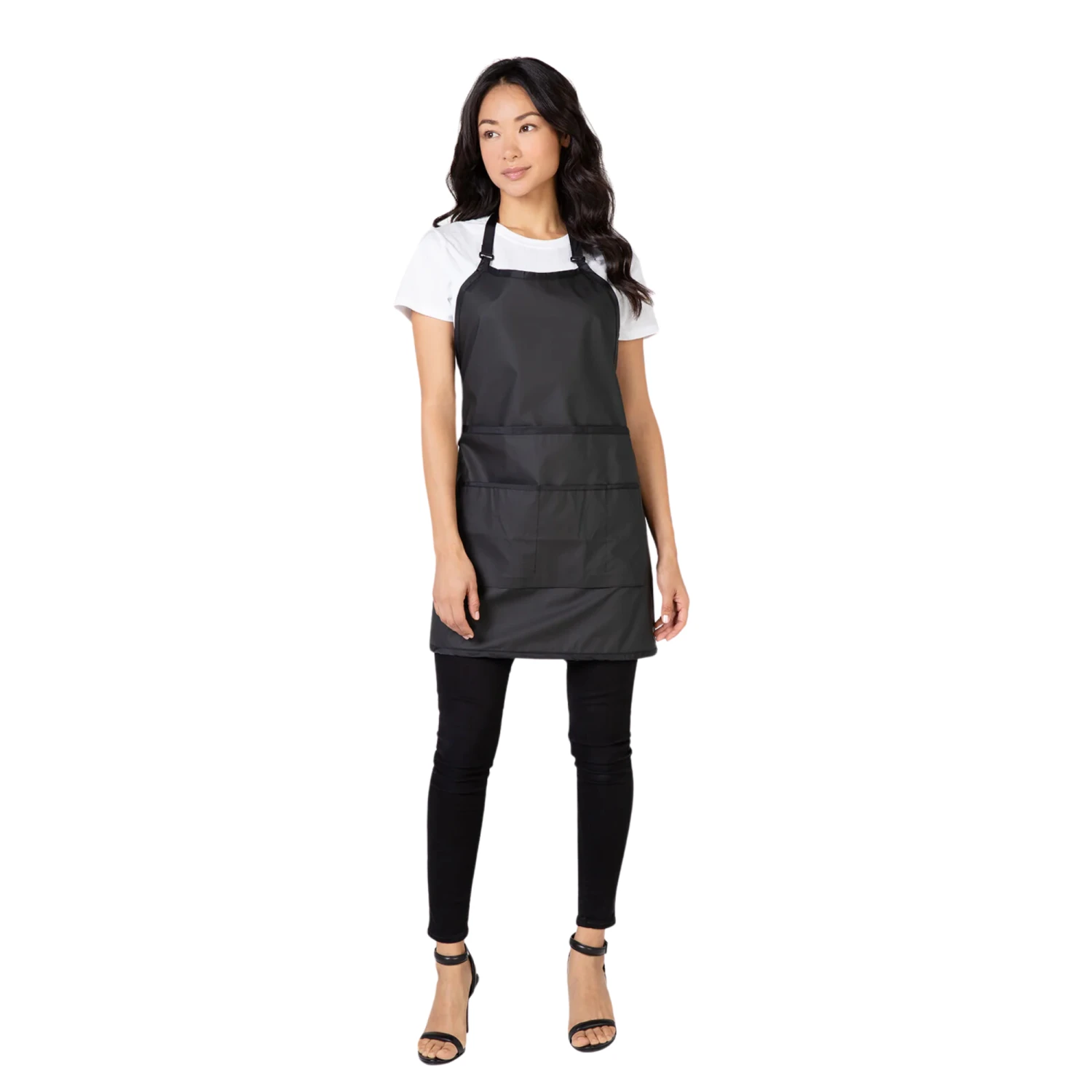 Made of soft lightweight polyurethane, this apron features adjustable neck and back closures plus 2 pockets with bottom zippers for easy hair removal. Apron converts into a tool skirt for versatility. Black. Chemical, color, and waterproof. Machine washable. 27″W x 30″L with adjustable neck and back closure.