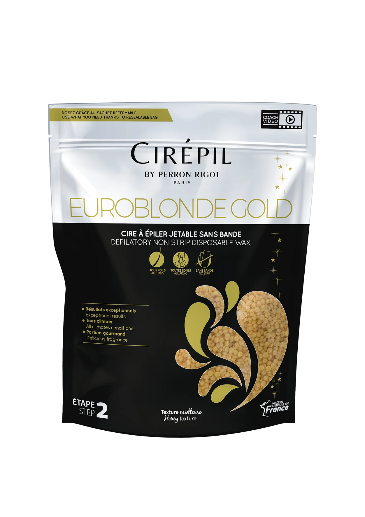 For gentle waxing that’s tough on even the coarsest hair, you and your clients will love non-strip Cirepil® Euroblonde Gold Edition. This comfortable, low temperature wax has an ultra fluid texture, exceptional removal, a shimmering gold color, and soothing fragrance. Suitable for all areas of the body. Award winning Euroblonde Gold is now available in the USA in honor of Cirepil’s 80th anniversary! 28.22 oz.