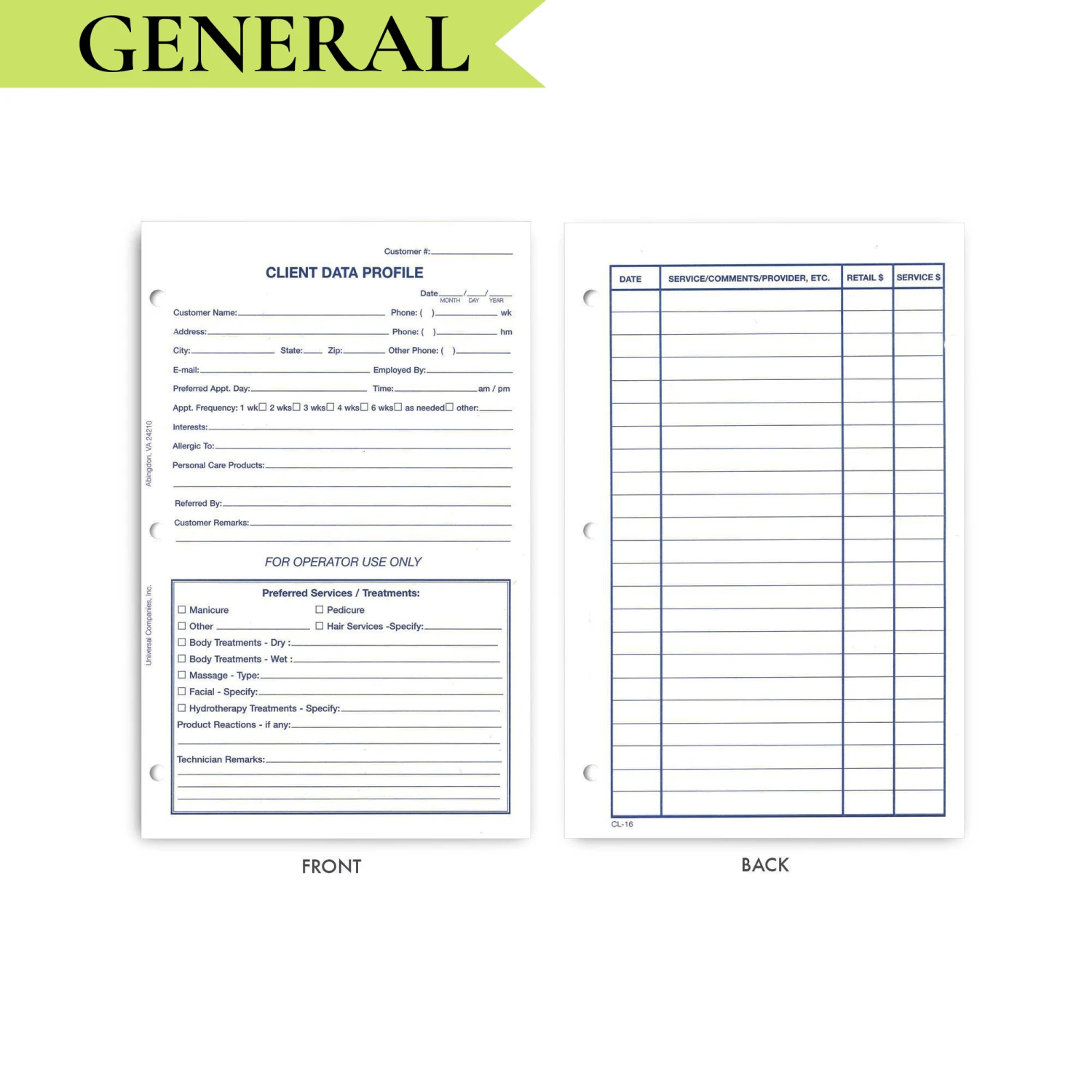 Allows you to keep track of a client’s service history, personal data, and special needs. You can conveniently review a client’s entire spa history at a glance. 8.5″ x 5.5″