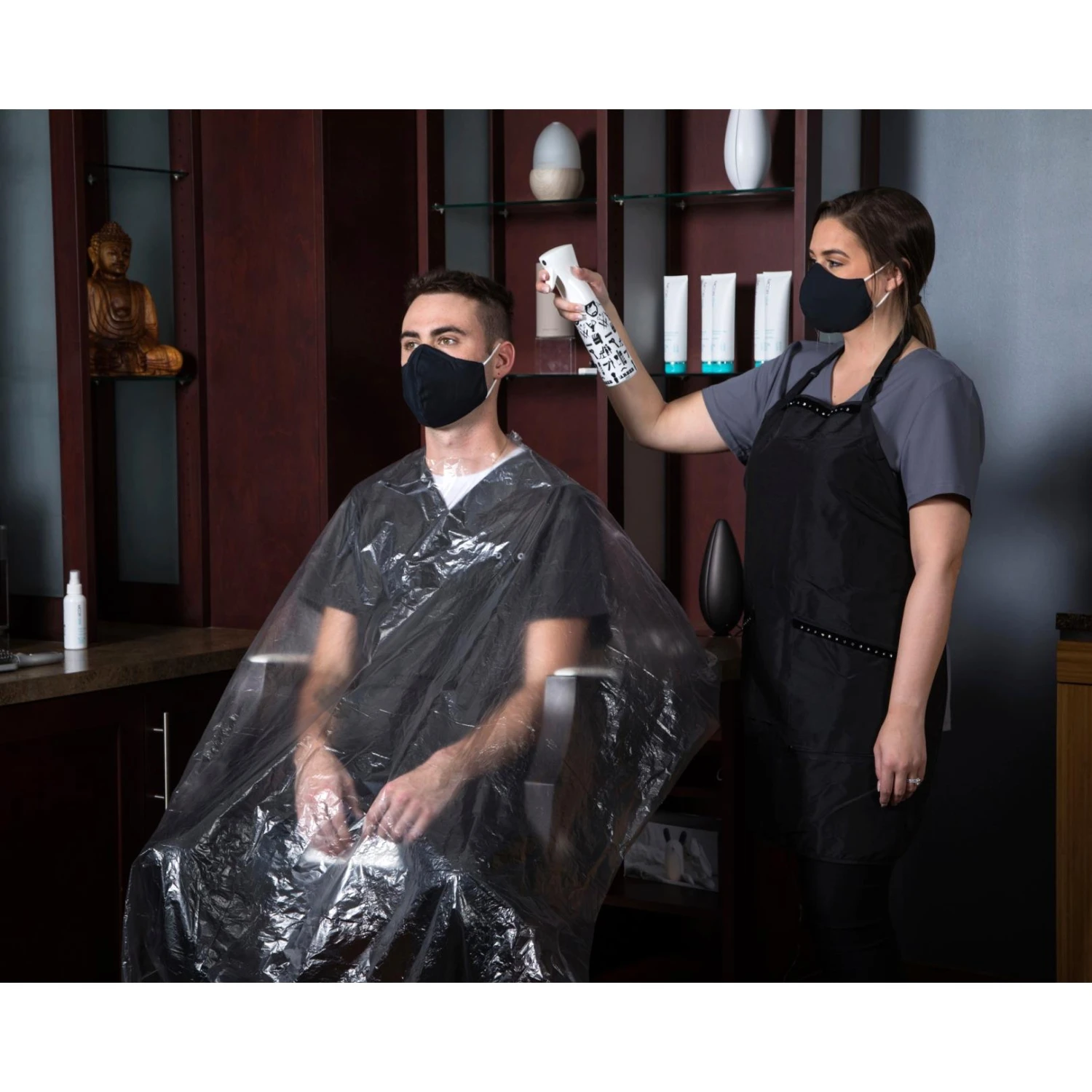 These single-use salon capes are a great choice to protect clients’ clothing during hair cutting, hair coloring, highlights, balayage, and other chemical treatments. They drop below the knees to provide full coverage in the front, and they also offer complete shoulder protection. Tie closure around the neck. Made of polyethylene to provide a 100% waterproof barrier. Durable and convenient for high volume salons. Low cost per service. 51″ W x 63″ L. 50 count bag.