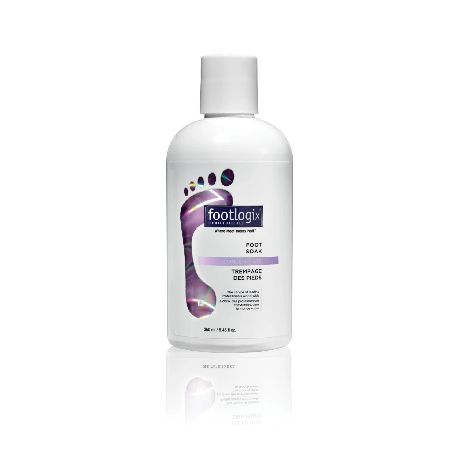 Dispense 1-2 pumps of Footlogix® Foot Soak Concentrate into a foot bath. Soak feet for 5–10 minutes (less than 5 minutes if client is diabetic).