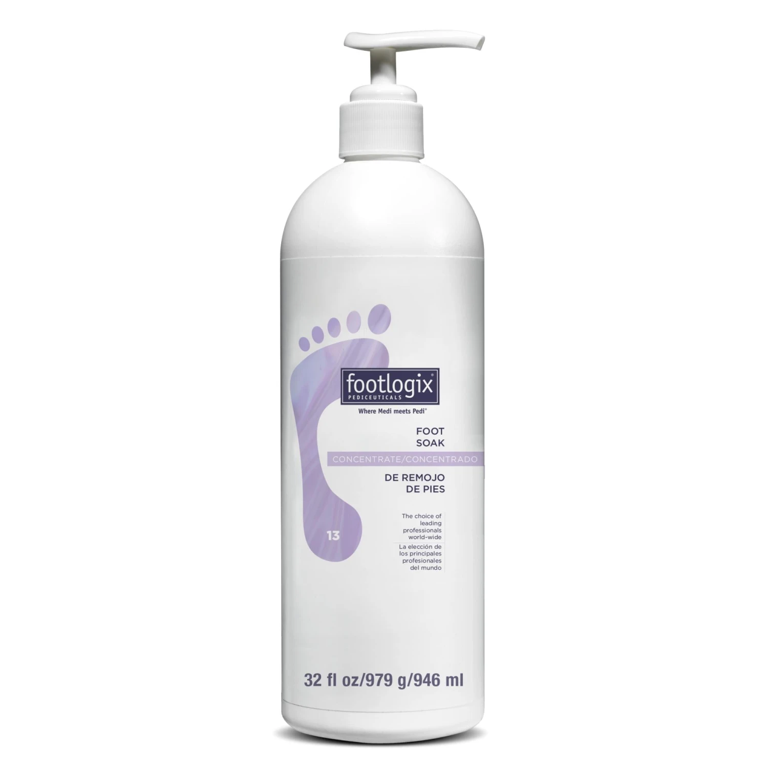 Moisturize and soften feet with this gentle, pH balanced foot soak. Because it’s rehydrating, this refreshing soak is recommended for normal, dry, or very dry skin. To help prevent cross-contamination, it features a hygienic pump dispenser. Fresh scent. Available for retail in an 8.45 fl. oz. size. Professional sizes in 32 fl. oz. and 128 fl. oz.