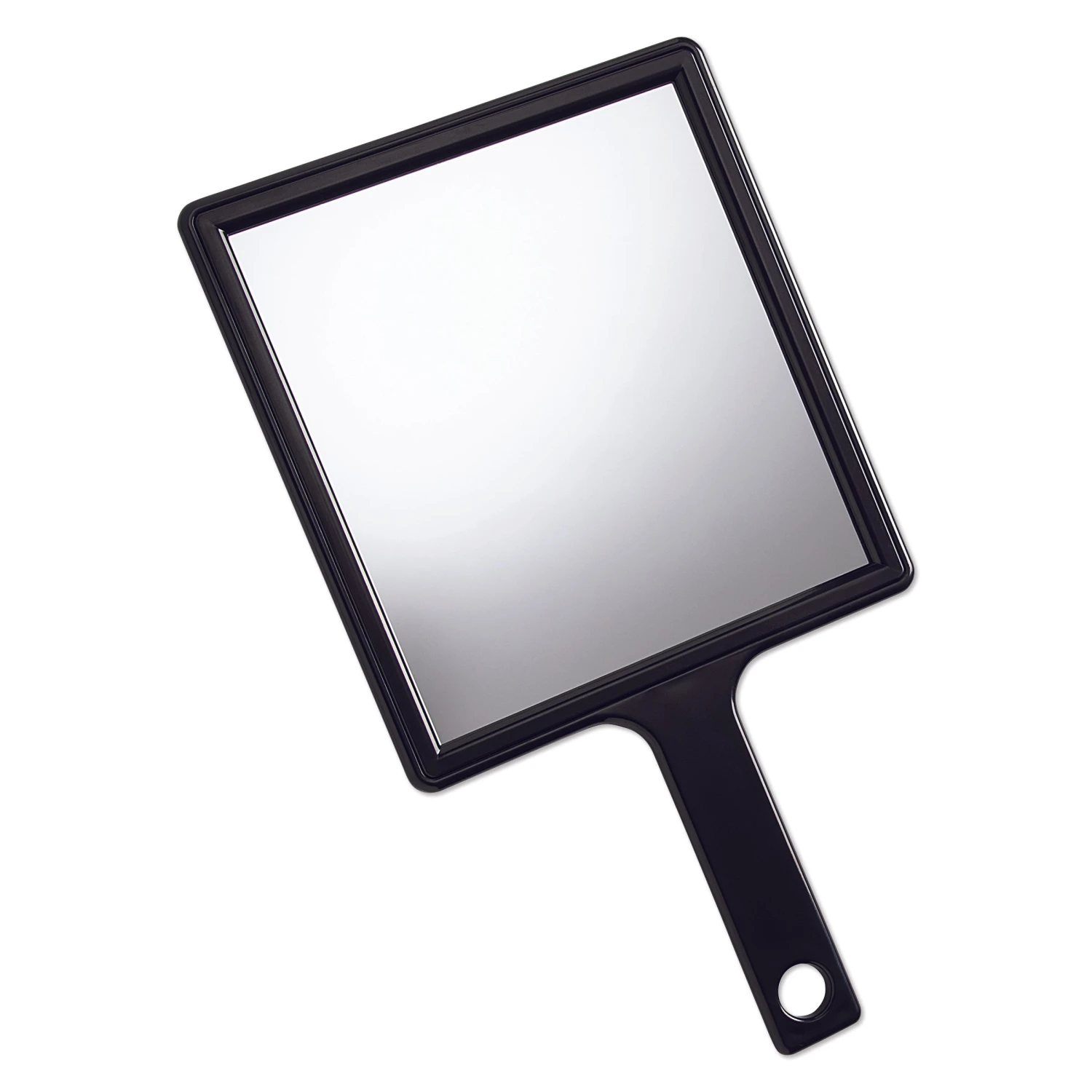 Show clients before and after looks during facials, makeovers, and salon services with this slim single-sided mirror. Save space by hanging it on the wall when it’s not in use. Black plastic and glass. Individually wrapped. Total dimensions including handle: 15.25″ L x 8.5″ W ; Mirrored glass dimensions: 8″ L x 7.25″ W