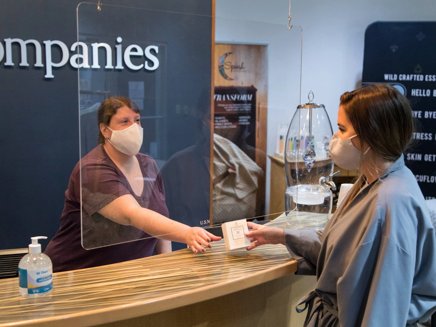 Great to use for separating clients during pedicure services. You can also use it for your front desk staff.