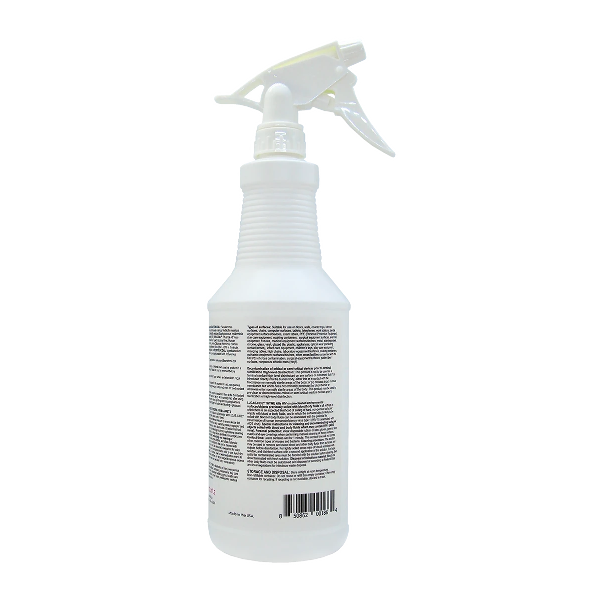 Botanical Lucas-Cide Thyme harnesses the natural disinfecting power of thyme (yes–the herb!) to eliminate 99.9% of viruses and bacteria on all hard, non-porous surfaces. One-step Lucas-Cide Thyme is powerful yet non-corrosive, streak-free, requires no mixing, and is free of synthetic chemicals. As an EPA category IV disinfectant, it has the lowest level of toxicity, is biodegradable, requires no PPE, and will not irritate skin, eyes, or lungs.