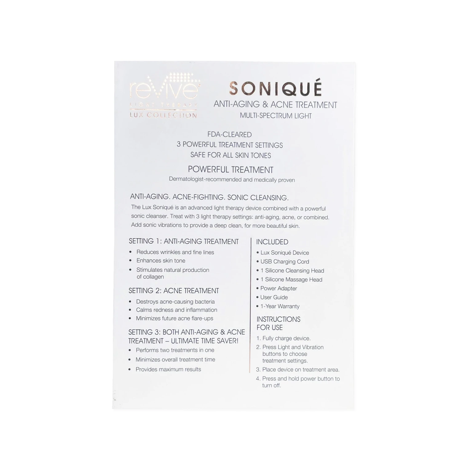 The Lux Soniqué is an advanced light therapy device combined with a powerful sonic cleanser. Treat with 3 light therapy settings: anti-aging, acne, or combined. Add sonic vibrations to provide a deep clean for more beautiful skin.
