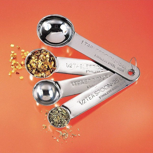 This 4-piece set is made of durable stainless steel, which means it can stand up to hours of heavy-duty use. These spoons are conveniently connected by a small ring which helps to keep the spoons together as a set. The smooth, mirror finish means that these spoons are easy to clean, and can be put into the dishwasher at the end of your day. With each measurement conveniently marked on the handle of each spoon, there’s no guess work with which size you’re choosing. Plus, because it is etched, you don’t have to worry about the measurements rubbing off after continuous use.