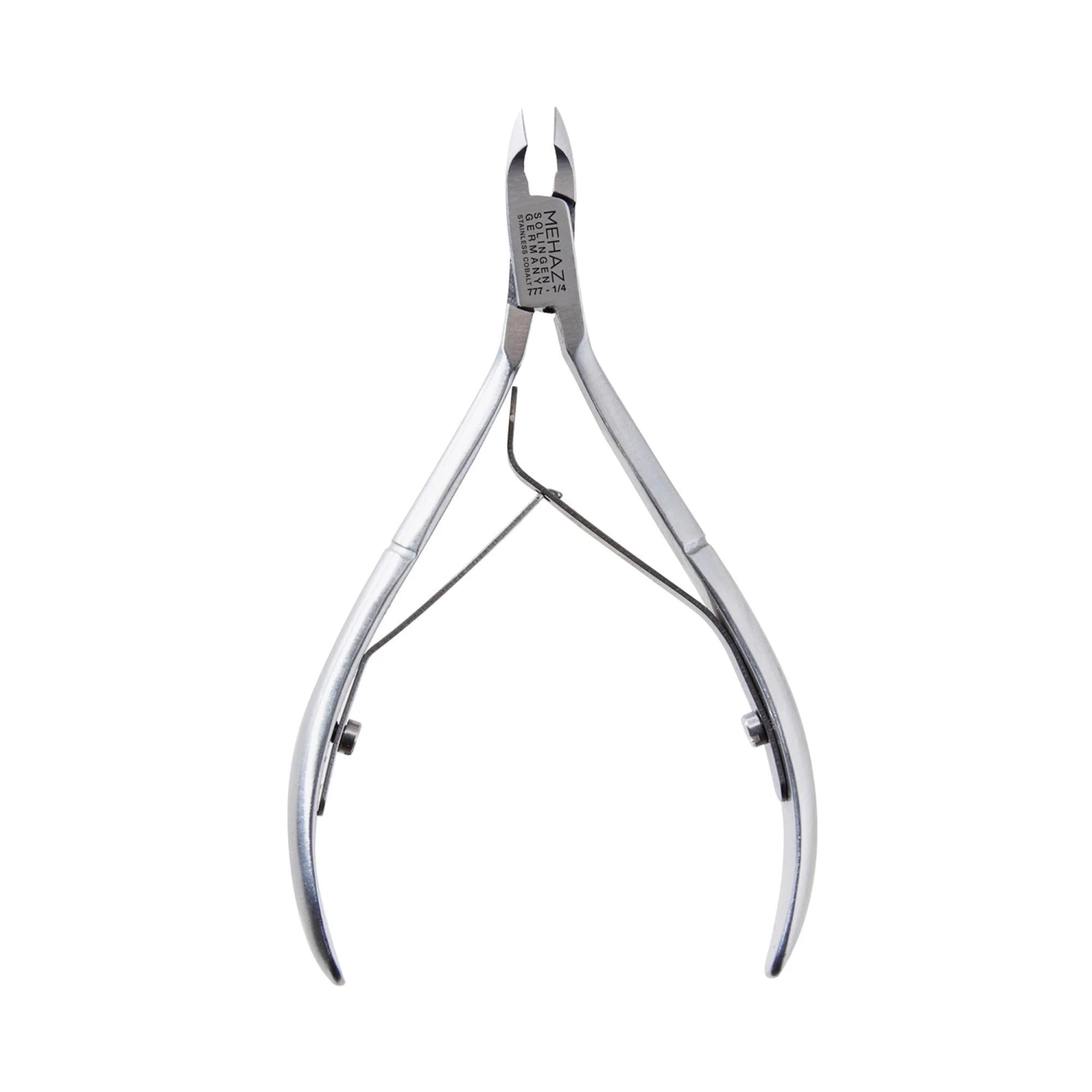 Trim cuticles and hang nails with precision using the Convertible Spring Cuticle Nipper from Mehaz®. The precision made, stainless steel nipper has a patented convertible spring that can be used as a double or single spring. Lapjoint. Stainless steel. 4”