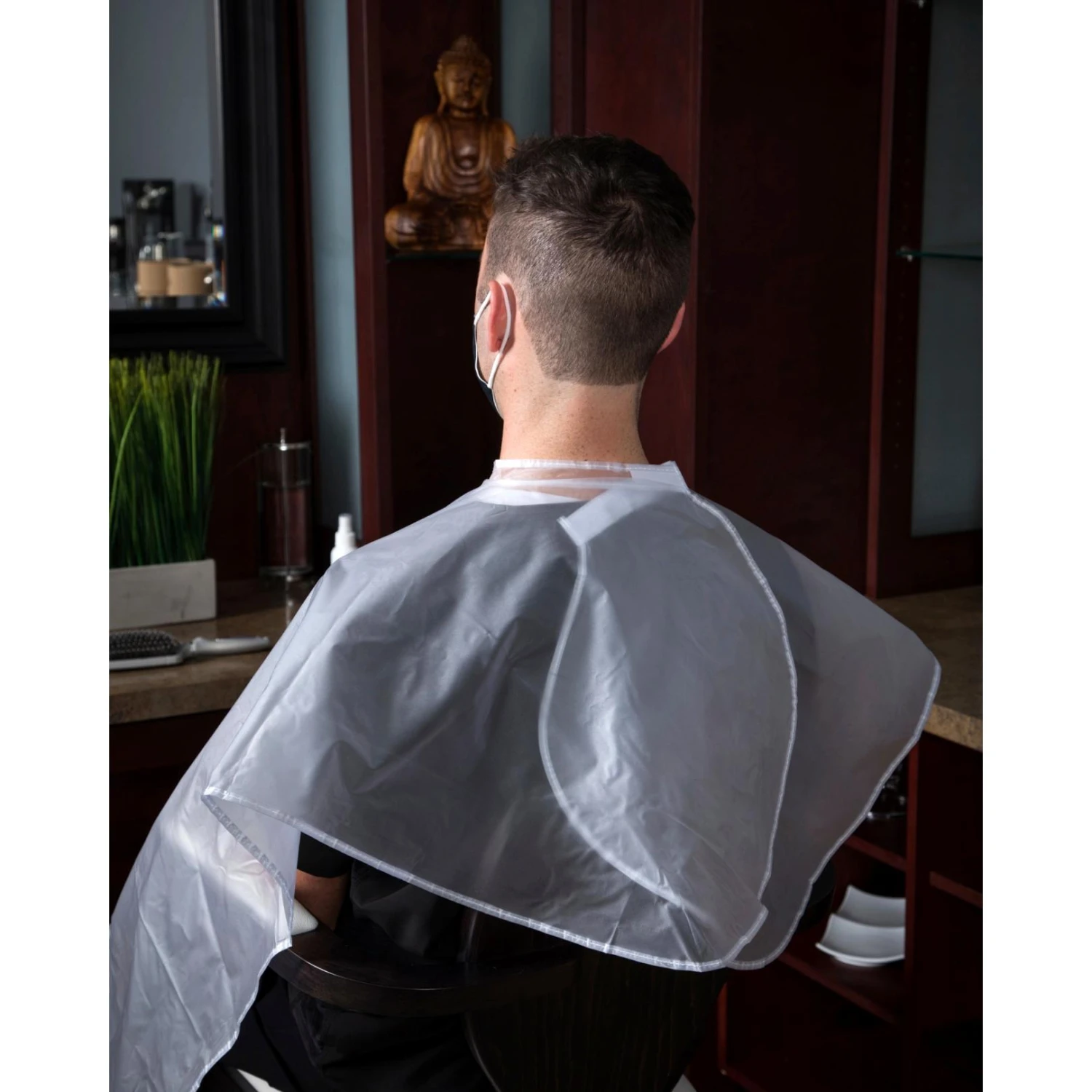 Our premium vinyl client cape serves as an essential shield against water, chemicals, and germs. Specifically designed for hair care services, it ensures a clean and safe environment for both clients and stylists. The cape boasts a carefully constructed neck band that provides a secure fit, ensuring comfort without undue pressure. This feature is complemented by a high-quality hook-and-loop closure system, adaptable to accommodate various neck sizes with ease.