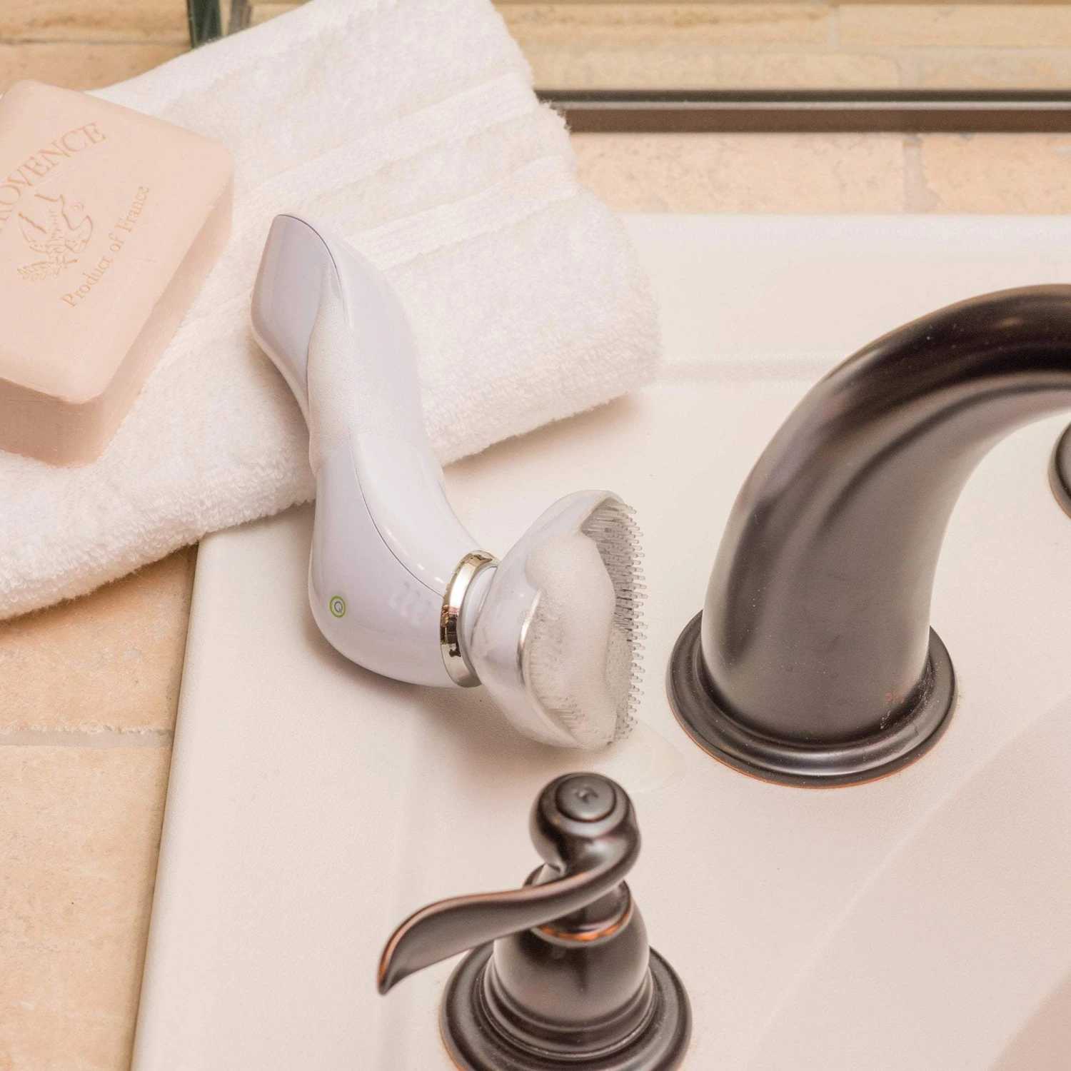 Offer your clients enhanced light therapy treatments with the reVive® Acne Sonic Cleansing Brush. In addition to utilizing infrared light to treat acne breakouts and prevent future flare-ups by fighting bacteria residing in the skin, this skin care tool uses sonic vibrations to massage the skin and allow for deeper cleaning. Comes with 2 interchangeable silicone treatment heads – one provides a cleansing brush head and the other provides a massage brush. FDA-cleared. OTC Class II medical device.