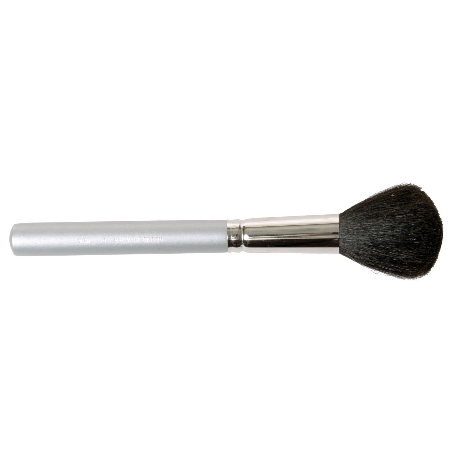 The Round Powder Brush #1 is made of black goat hair for a smooth application and a flawless finish. Designed with the make-up professional in mind, but perfect for retail. Handle labeled with name and number of brush. Solid wood handle with silver matte finish.
