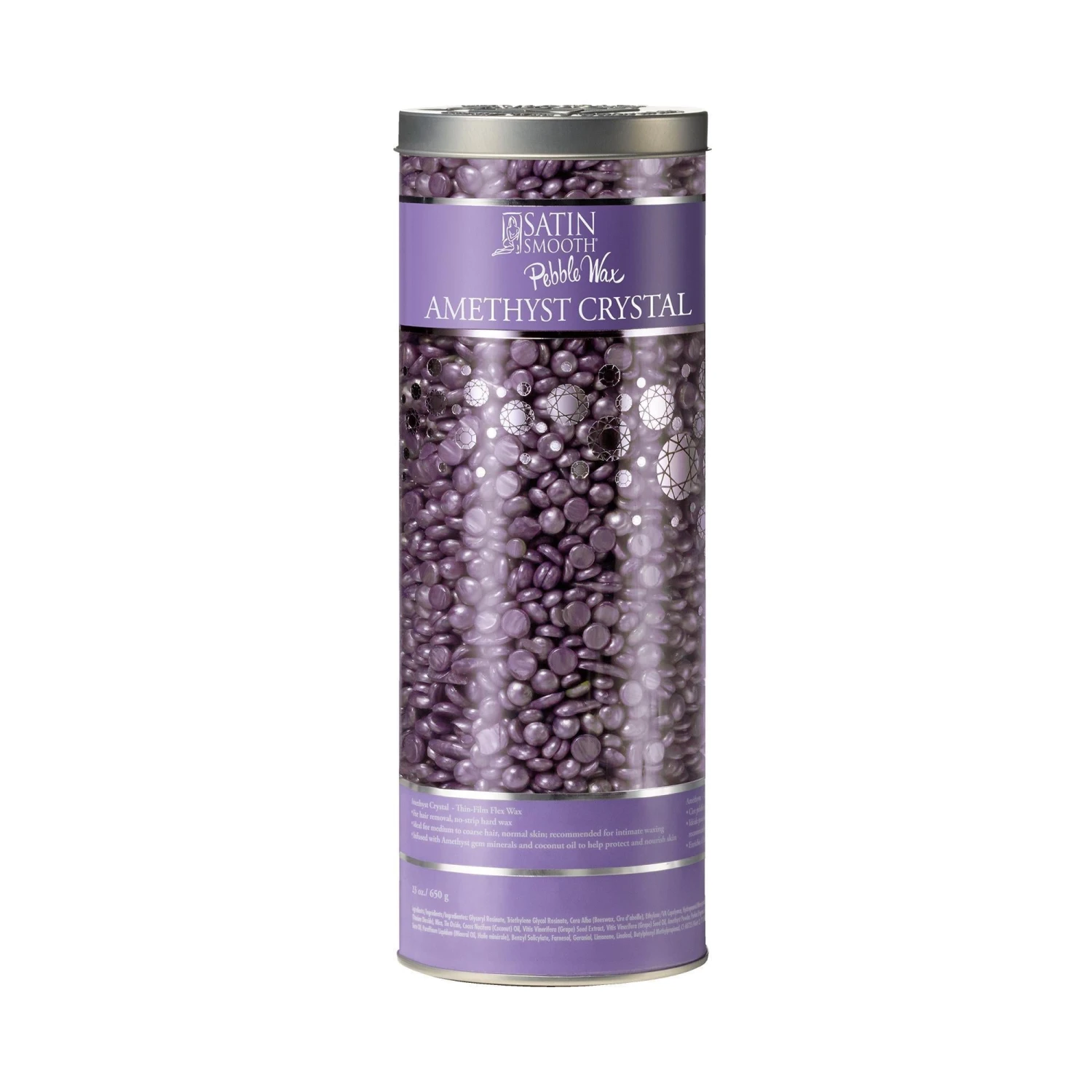 Enhance your waxing treatments with timeless gemstones! The Satin Smooth® Luxury Gem Wax Collection was designed to provide a well-balanced, professional service, and this collection incorporates finely milled gemstones and crystal derived from the Chakra balancing assortment to promote harmony, calm, and inner peace. These customizable waxes, imported from Italy, are infused with essential oils, minerals, and fragrances. Ideal for medium to coarse hair, Amethyst Crystal Quartz Thin-Film Flex Pebble Wax is infused with amethyst gem minerals and coconut oil to help protect and nourish skin. It’s lightly scented with lotus flower. This no-strip disposable wax is recommended for facial and Brazilian bikini waxing and for normal and delicate areas. It comes in a convenient, easy-to-use canister and is dermatologist tested. 23 oz.