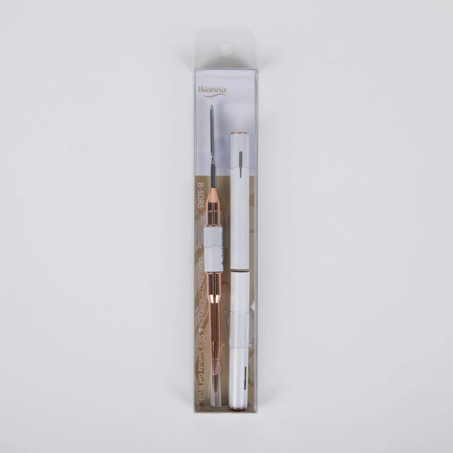This gel brush’s dual-ended design can be used with UV gel application, sculpted gel application, or extension gel tips. Its stainless steel tip is used to pick up UV gel and the gel brush is used to blend gel and to shape nail tips. Made of stainless steel and durable nylon fiber. Length: 6.5″. Rose Gold.