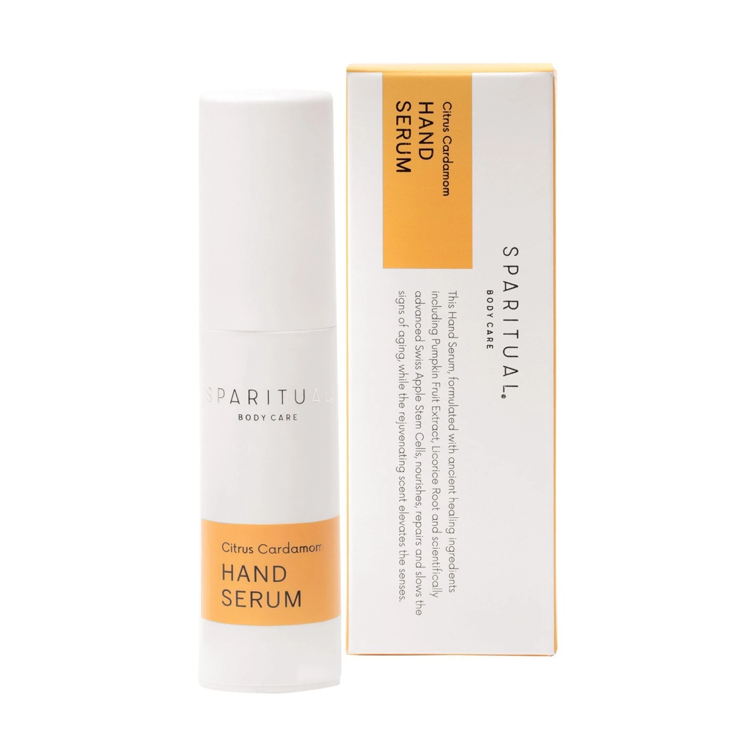 Enrich your clients’ rituals with SpaRitual® Citrus Cardamom Hand Serum. Formulated with a blend of pumpkin fruit extract, licorice root, and advanced Swiss apple stem cells to nourish and slow the look of aging concerns while the rejuvenating scent of Citrus Cardamom elevates the senses. Vegan, organic, and Leaping Bunny certified. Free of parabens, petrochemicals, synthetic fragrances, and dyes. For professional use.