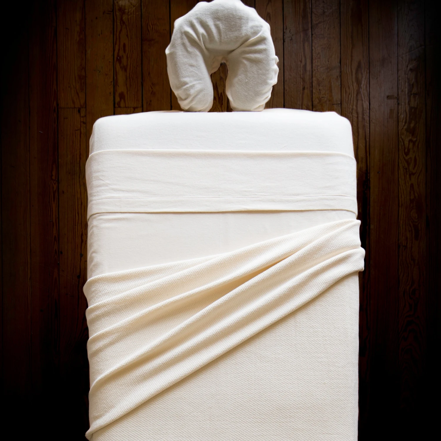 These organic flannel massage table sheets are soft, warm, and cozy. They feature a thread count of 200, and because they’re unbleached, they’re natural in color. The added benefit of being pesticide-free and eco-friendly will bring good karma to every treatment. 100% organic. Made from SKAL/CU certified organic unbleached cotton.