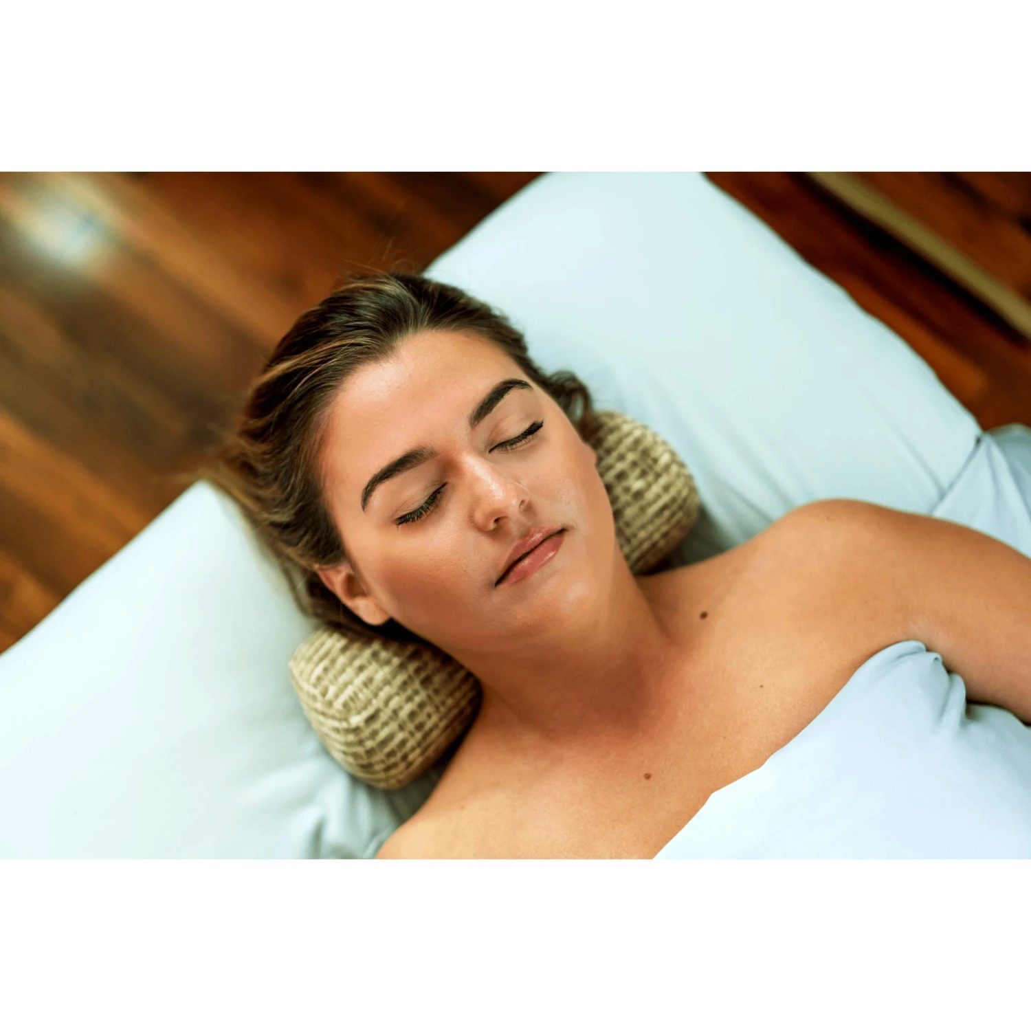 Help clients reach ultimate relaxation with the Theratools™ Hemp Filled Heated Neck Wrap. Formulated with 60% organic hemp and 12 soothing, aromatic herbs. Great for pre- or post-treatment. Can be heated in a microwave or hot towel cabi, and used either hot or cold. The unique shape of this neck wrap supports the head and neck, providing additional comfort to clients when they are face up on the table while receiving massage or facial services. 10″L x 3.5″W x 3.5″H
