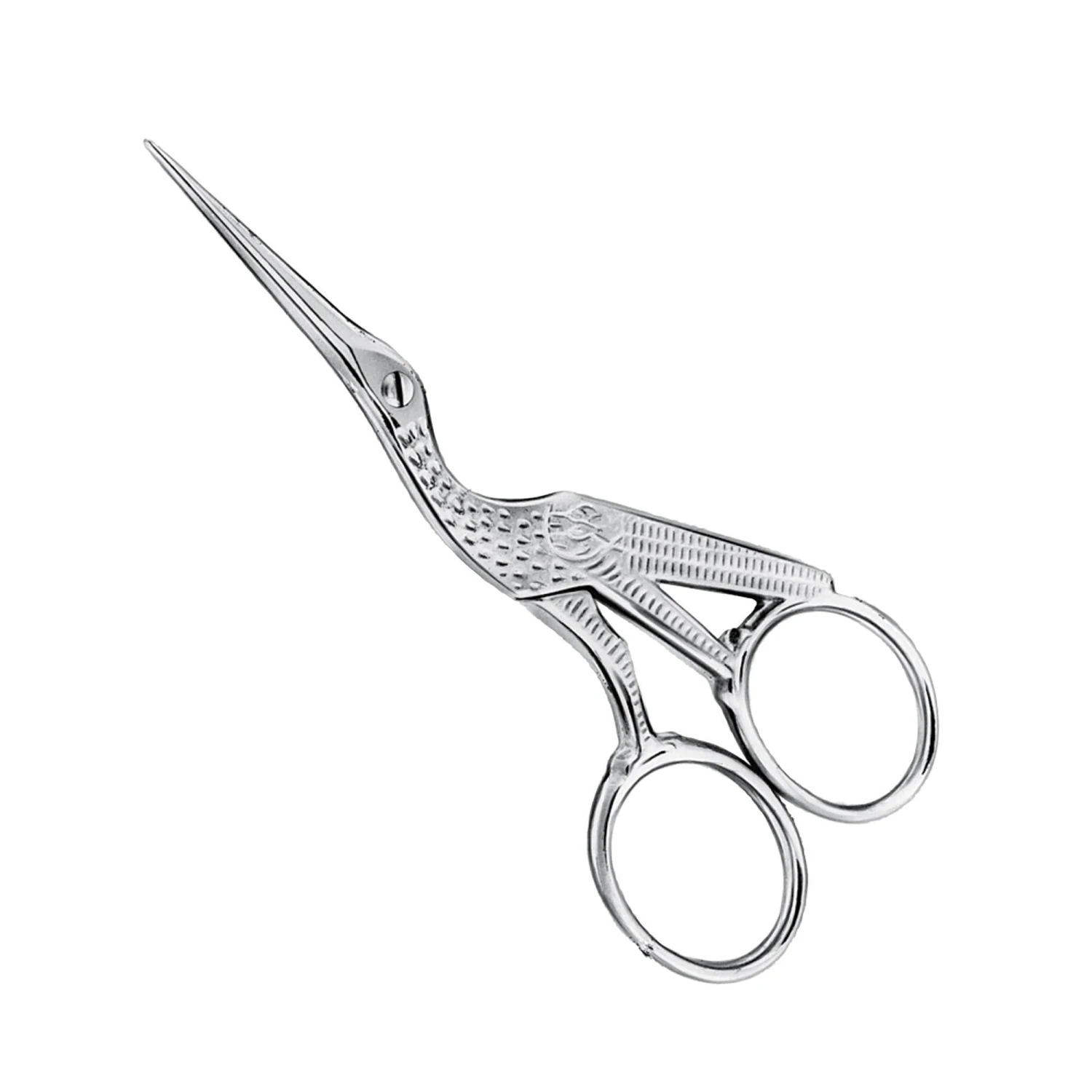 Tweezerman® Stork Scissors feature sharp, thin pointed blades for trimming brows and cutting facial hair. Can also be used for precise cutting of linen, silk wrap, or fiberglass. Nickel plated. 3.61″